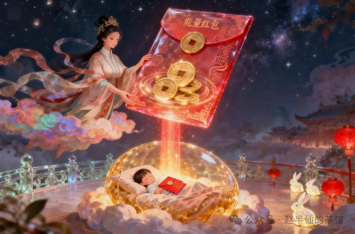 说到底,压岁钱的风水核心,从来不在钱多钱少。它是用 “金” 的稳固、“红” 的守护,把长辈的爱与祝福递出去,为孩子、也为我们自己,筑起一道温暖的身心屏障。##赵半仙的茶馆##压岁钱##能量